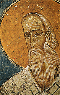 Μιχαήλ Ακομινάτος Χωνιάτης, επίσκοπος Αθηνών 1182-1204. Λεπτομέρεια από τοιχογραφία του Αγίου Πέτρου στα Καλύβια Κουβαρά Αττικής. Αθήνα, 1η Εφορεία Βυζαντινών Αρχαιοτήτων. ΥΠΠΟ/ΤΑΠ.