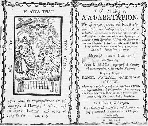 Το πρώτο γνωστό ελληνικό αλφαβητάριο, τυπωμένο στη Βιέννη το 1771, με δαπάνη του Κ.Α Φιλιππίδου.