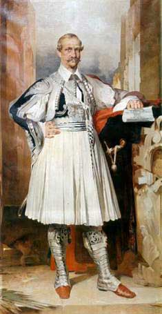 Όθωνας (1815-1867) » Ολόσωμο πορτραίτο του Βασιλιά Όθωνα με φουστανέλα. Έργο του Νικηφόρου Λύτρα.