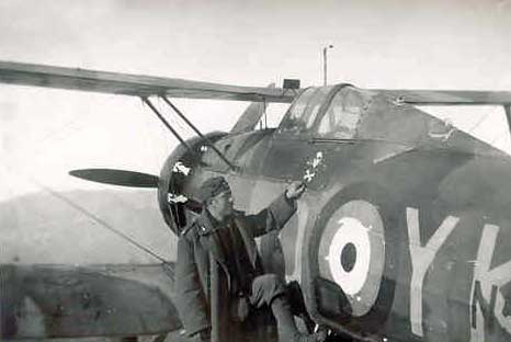 Ημέρες του ’40 » Σπάνια φωτογραφία ενός Gloster Gladiator MK 2 (καταδιωκτικό) που επιχειρούσε από το αεροδρόμιο της Παραμυθιάς : Καράμπελας Ιωάννης του Αναστασίου, Διαβιβαστής.
