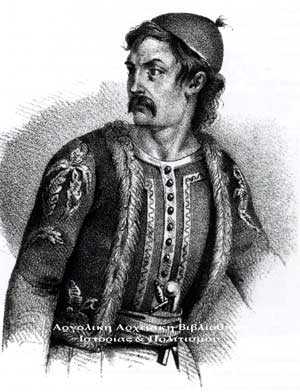 Κολοκοτρώνης Ιωάννης ή Γενναίος, λιθογραφία. Φανταστική απεικόνιση, Pouqueville, Napoli, 1841.