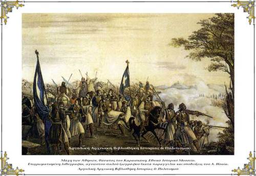 Μάχη των Αθηνών, επιχρωματισμένη λιθογραφία αγνώστου Ιταλού ζωγράφου ( κατά παραγγελία και υποδείξεις του Α. Ησαΐα.
