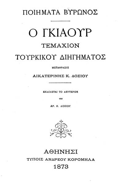 Γκιαούρ τεμάχιον τουρκικού διηγήματος, 1873.