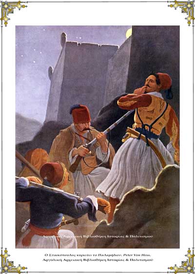 Η Άλωση του Παλαμηδίου και ο Στάϊκος Σταϊκόπουλος » Ο Σταϊκόπουλος κυριεύει το Παλαμήδι. Peter Von Hess, επιχρωματισμένη λιθογραφία.