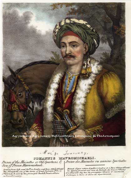Ιωάννης Μαυρομιχάλης. Επιζωγραφισμένη λιθογραφία, Adam Friedel, Λονδίνο- Παρίσι, 1830.