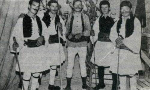 Στιγμιότυπο από την παράσταση της «Γκόλφως», 1939, στο χωριό Μάνεσι. Η φωτογραφία είναι τραβηγμένη από το «Φωτογράφο του χωριού», πατέρα του συγγραφέα Γ. Καραμάνου.