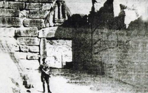 Ιταλός καραμπινιέρος στις Μυκήνες: Η περίφημη «Πύλη των Λεόντων», φρουρείται από τα Ιταλικά στρατεύματα κατοχής. Ιστορικό Φωτογραφικό Αρχείο της Ιταλίας.