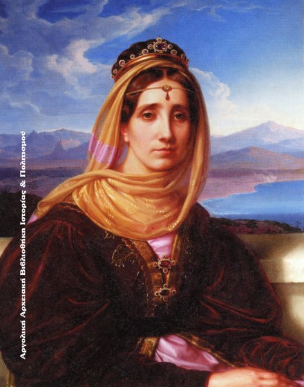 Ανάμεσα σε άλλες γυναίκες με ελληνική ενδυμασία, ήταν μια κάπως ηλικιωμένη εξαιρετικά όμορφη Σπαρτιάτισσα, πολύ ψηλή και γερή που φορούσε ένα σαρίκι στενό και ψηλό από ανοικτό κίτρινο μαλακό μάλλινο ύφασμα, του οποίου το κόκκινο κράσπεδο τελείωμα ήταν γυρισμένο μπροστά σαν ένα κουμπί, μια φούστα με πιέτες από ύφασμα σε χρώμα κόκκινο-καφέ με μπορντούρα σε πιο ανοικτό κόκκινο χρώμα, μια ωραία κομμένη ζακέτα σαν επανωφόρι κουμπωμένη γύρω από το λαιμό και ένα κεντημένο άσπρο σάλι που έπεφτε σε πιέτες πάνω στο στήθος και τυλιγόταν μέσα στην φούστα. Οι Υδραίοι και οι γυναίκες τους είναι όσον αφορά τη χάρη, την καθαριότητα και την απλότητα οι πιο ελκυστικοί που μπορεί κανείς να φανταστεί, όλοι ευγενείς και όμορφοι με μάτια φλογερά και συγχρόνως καλόκαρδα».
