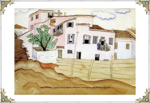Ζωγραφικοί πίνακες του Ναυπλίου, φιλοτεχνημένοι από μεγάλους ζωγράφους » Γιάννης Τσαρούχης (1910-1989), «Σπίτια στο Ναύπλιο 1927», Νερομπογιά σε χαρτί.