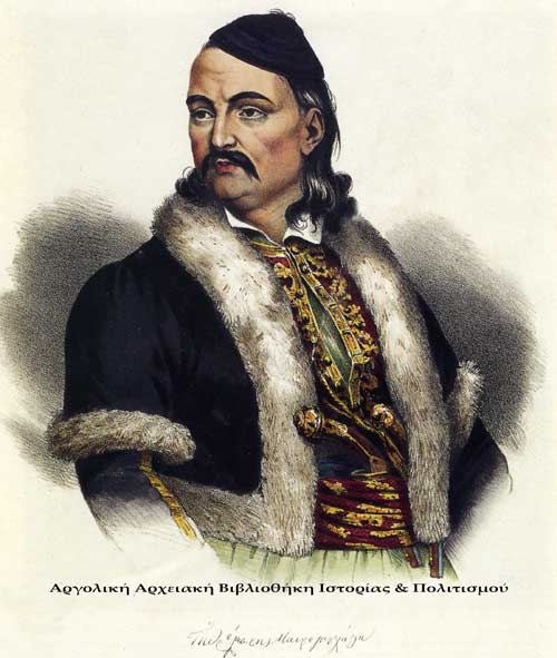 Μαυρομιχάλης Πετρόμπεης (1765 ή 1773 – 1848) » Πετρόμπεης Μαυρομιχάλης. Μπέης της Μάνης. Πρόεδρος του Εκτελεστικού της Προσωρινής Διοίκησης της Ελλάδας το 1822. Επιζωγραφισμένη λιθογραφία, Adam Friedel, Λονδίνο – Παρίσι, 1830.
