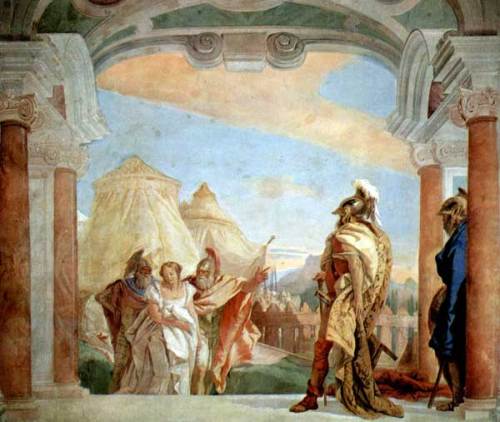 «Η Βρισηίς οδηγείται στον Αγαμέμνονα από τους Ταλθύβιο και Ευρυβάτη.» Τοιχογραφία του Τιέπολο στη Villa Valmarana της Βιτσέντζα (1757).
