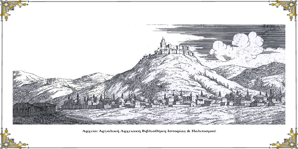 Απογραφή του πληθυσμού και των κτισμάτων του Άργους κατά την Β΄ Βενετοκρατία (1698) » Άποψη του φρουρίου και της πόλεως του Άργους, V. Coronelli, «Universus Terrarum Orbis», Εκδότης, A. Lazor, Padova, 1713.