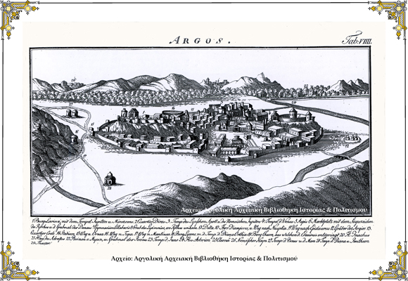 Εικόνα του Αρχαίου Άργους, Chaiko, 1790. Ο σχεδιαστής φαίνεται να είχε επισκεφτεί το Άργος το οποίο ίσως να ήταν κατεστραμμένο τότε. Έτσι προτίμησε να σχεδιάσει μια ρομαντική, φανταστική εικόνα του Αρχαίου Άργους, βάσει των αφηγήσεων του Παυσανία.