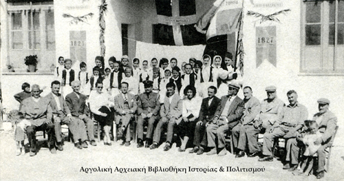 Οι αρχές του τόπου φωτογραφίζονται με τους μαθητές κατά την Εθνική εορτή της 25ης Μαρτίου 1958.