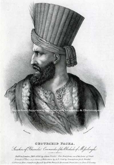 Προσωπογραφία του Χουρσίτ Πασά. Λιθογραφία, Εκδ. Adam Friedel, Λιθ. Bouvier, Τυπ. P. Simonau, Λονδίνο, Φεβρουάριος 1826.