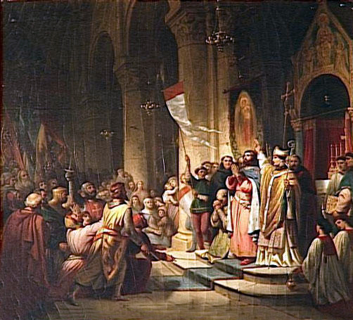 Η στέψη του Βονιφάτιου του Μομφεράτου σαν αρχηγού της 4ης Σταυροφορίας – έργο του Henri Decaisne (1840).