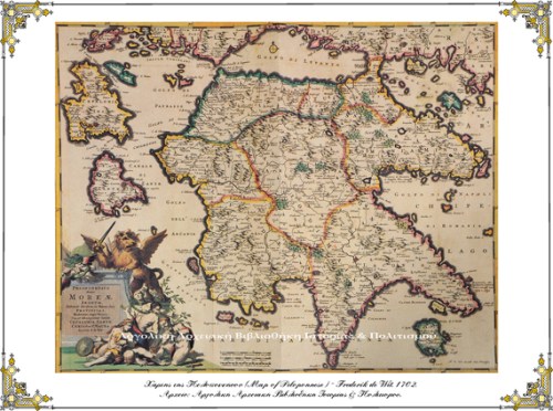 Χάρτης της Πελοποννήσου (Map of Peloponnese) - Frederik de Wit, 1702.