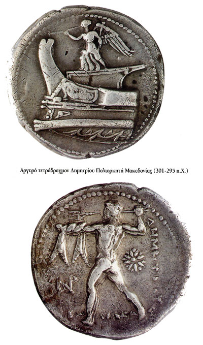 Το νόμισμα στον αρχαίο Ελληνικό κόσμο » Αργυρό τετράδραχμον Δημητρίου Πολιορκητή Μακεδονίας (301-295 π.χ.)