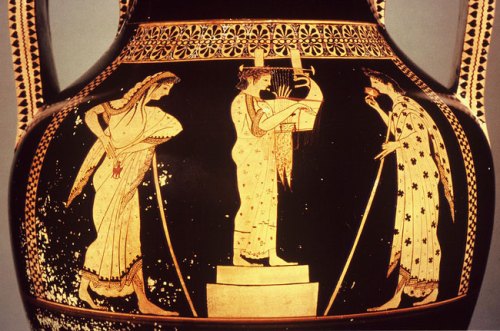 Εικ. 2. Κιθαρωδός σε μουσικό αγώνα στον ερυθρόμορφο αμφορέα του αγγειογράφου Ανδοκίδου. 5ος π.Χ. αιώνας. Μουσείο Λούβρου, G1. Φωτογραφία της RMN. Φωτογράφος Lewandowski.
