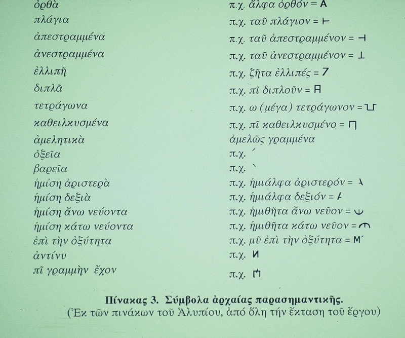 Εικ. 8. Πίνακας με σύμβολα αρχαίας παρασημαντικής.