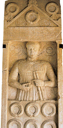 Επιτύμβια στήλη του Κορίνθιου Λεύκιου Κορνήλιου, όπου νίκησε στους αγώνες των Ηραίων τον 2ο αι. μ.Χ. δύο φορές. Μουσείο Ισθμίας.