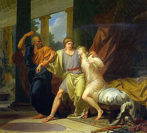 Ο Σωκράτης απομακρύνει τον Αλκιβιάδη από την αγκαλιά της αισθησιακής απόλαυσης. Λάδι σε καμβά του Ζαν Μπατίστ Ρενό, 1791. Μουσείο Λούβρου, Παρίσι.