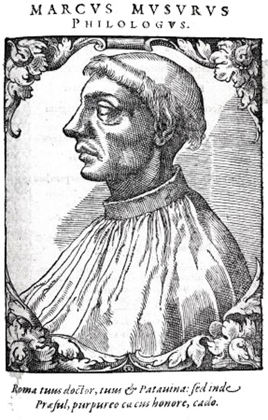 Μάρκος Μουσούρος, χαλκογραφία, Reusner, Icones Clarorum Vivorum, 1589.