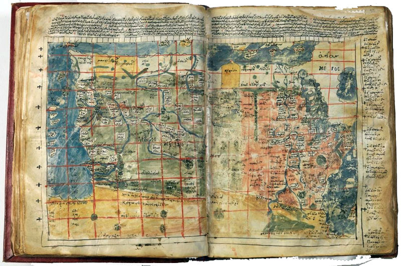 Το παλαιότερο σωζόμενο χειρόγραφο με τη «Γεωγραφία» του Κλαύδιου Πτολεμαίου. Βιβλιοθήκη Ιεράς Μονής Βατοπεδίου.