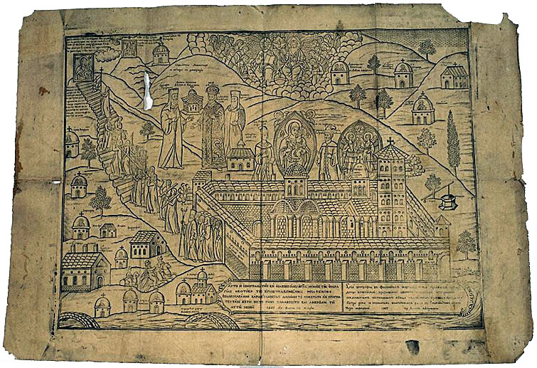 Βιβλιοθήκες – Αθωνική Πολιτεία » Xαλκογραφία: H μονή Mπάτσκοβο. 1807, Bιέννη.