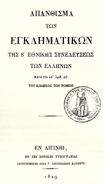 «Απάνθισμα των Εγκληματικών», η πρώτη ποινική ελληνική κωδικοποίηση (1824)