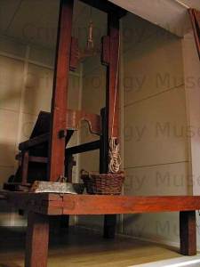 Ξύλινη λαιμητόμος της εποχής του Όθωνα. Εγκληματολογικό Μουσείο. Ιατρική Σχολή του Εθνικού & Καποδιστριακού Πανεπιστημίου Αθηνών.