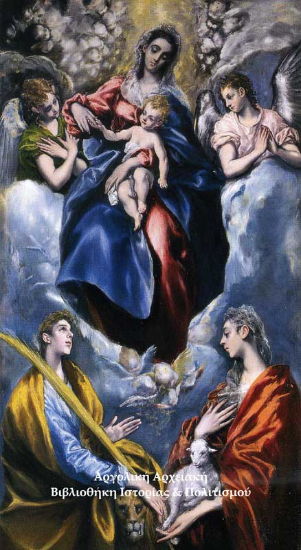 Η Παναγία και το Θείο Βρέφος με την Αγία Μαρτίνα και την Αγία Αγνή (1-597-99). Ελ Γκρέκο, Λάδι σε μουσαμά, Ουάσινγκτον, Εθνική Πινακοθήκη.
