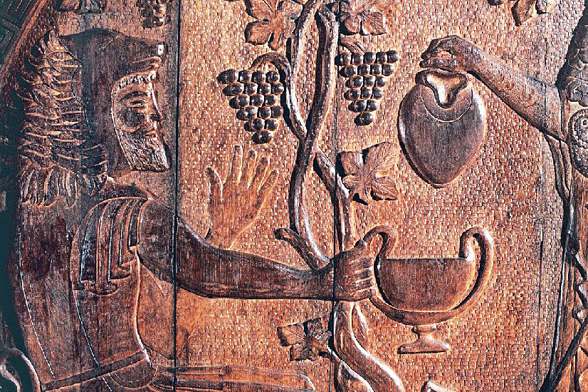 Λεπτομέρεια ξυλόγλυπτου με παράσταση αμπελιού.