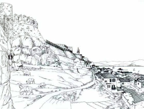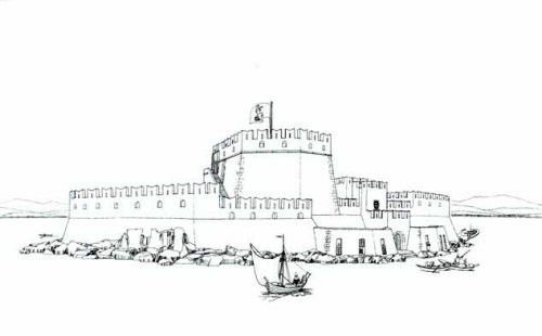 Σχεδιαστική αναπαράσταση του καστέλο της θάλασσας (Μπούρτζι), Venezianische Festungsbaukunst in Griechenland. Zum Ausbau der Festung Nauplia, από το περιοδικό “architectura, Journal of the History of Architecture”, Deutscher Kunstverlag Munchen Berlin, 1988.
