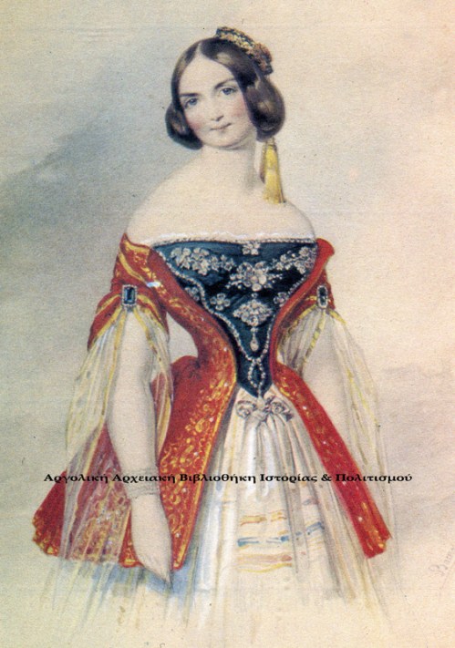Η Βασίλισσα Αμαλία με αυλική αμφίεση χορού.