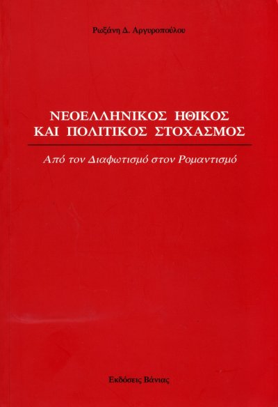 Στον τόμο αυτόν έχουν συγκεντρωθεί μελετήματα και άρθρα της ομότιμης Διευθύντριας Eρευνών στο Ινστιτούτο Nεοελληνικών Eρευνών του Eθνικού Iδρύματος Eρευνών Pωξάνης Δ. Aργυροπούλου, γραμμένα το καθένα χωριστά με ιδιαίτερη αφορμή αλλά τα οποία διέπονται πάντοτε από τις ίδιες ερευνητικές αρχές και από έναν ενιαίο προβληματισμό, τη συνειδητοποίηση μιας καινούργιας δυναμικής στη νεοελληνική κοινωνία του δεκάτου ενάτου αιώνα, η οποία της επέτρεψε να αποκτήσει έναν δικό της ηθικό και πολιτικό στοχασμό. Στις μελέτες αυτές διερευνάται η συγκρότηση του νεοελληνικού ηθικού και πολιτικού στοχασμού, από την αφύπνιση της ελληνικής εθνικής συνείδησης και τη δημιουργία καινούργιας αντίληψης περί ηθικής ως την αποκρυσταλλωποίηση νέων πολιτικών και κοινωνικών επιδιώξεων στο νεοσύστατο ελληνικό κράτος.