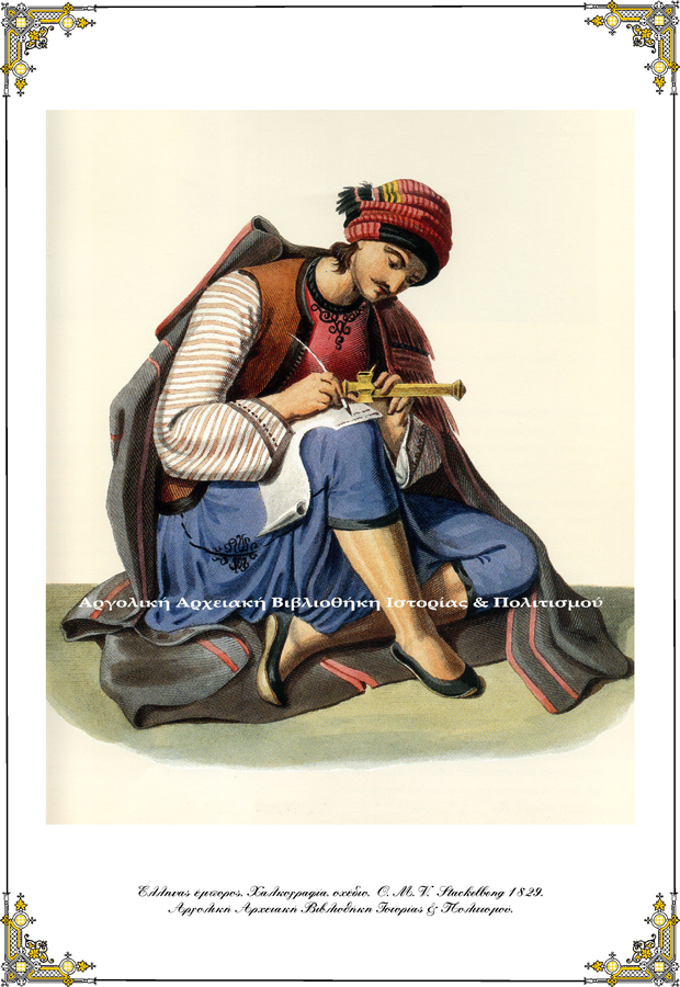 Έλληνας έμπορος. Χαλκογραφία. Σχέδιο O. M. v. Stackelbeng, χάραξη N. Guidetti.