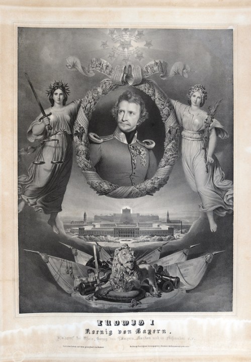 Δοξαστικό πορτρέτο του Λουδοβίκου Α΄ της Βαυαρίας. Λιθογραφία, Αθήνα, Εθνικό Ιστορικό Μουσείο.