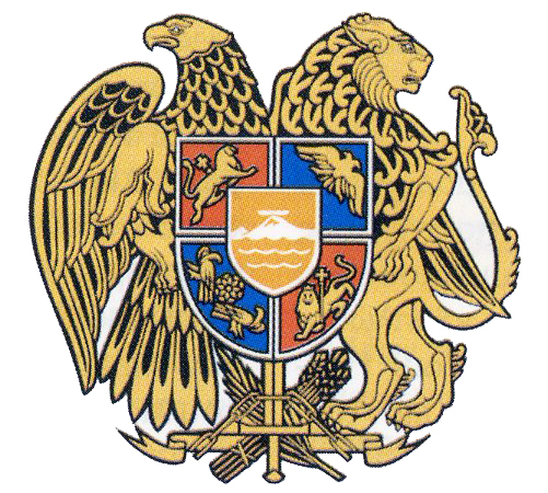 Ο θυρεός της Αρμενίας. Φέρει λέοντα και αετό που υποβαστάζουν μια ασπίδα με σύμβολα του αρμενικού έθνους (μεταξύ των οποίων εμφανίζονται επίσης λέοντες, ενώ στο κέντρο δεσπόζει το όρος Αραράτ).
