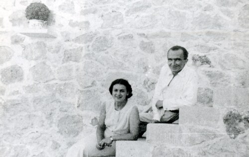 Ο Νίκος Καζαντζάκης με την Lea Dunkelblum-Levin στην Αίγινα. Δημοσιεύεται στο Περιοδικό «Δέντρο», τεύχος 155-156, Μάιος 2007.
