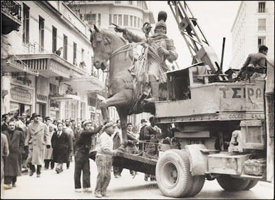 Αθήνα, μεταφορά του αγάλματος του Κολοκοτρώνη.