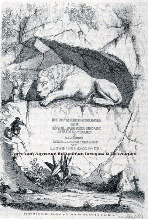 Ανυπόγραφo χαρακτικό σε ατσάλι (24 x 16,7 εκ.), το οποίο αναπαριστά το μνημείο της Πρόνοιας. Μουσείο του βασιλιά Όθωνα στο Οττομπρούν του Μονάχου (König-Otto-von-Griechenland-Museum der Gemeinde Ottobrunn). Στο κάτω μέρος φέρει την εξής επιγραφή: «Denkmal der in Griechenland gefallenen Baiern von Christian Siegel». [= Μνημείο των Βαυαρών πεσόντων στην Ελλάδα του Χριστιανού Ζίγκελ]