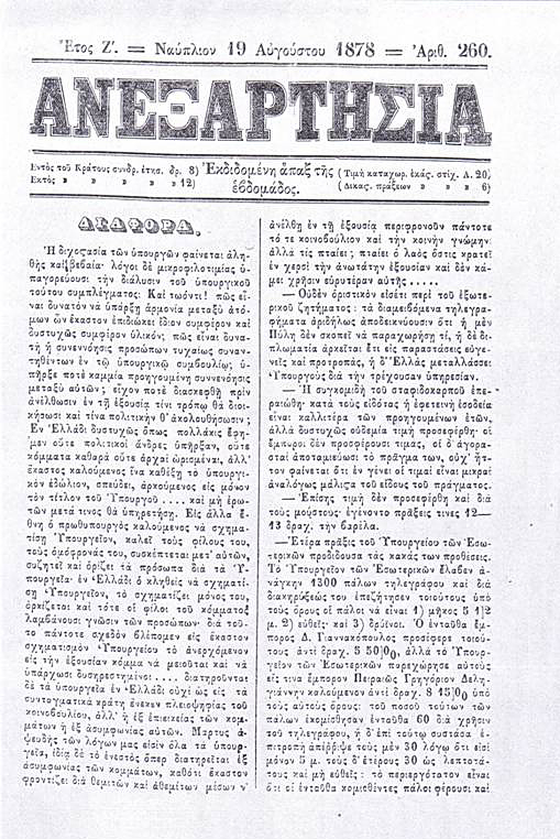 Μερικές παλαιές εφημερίδες του Ναυπλίου » ΑΝΕΞΑΡΤΗΣΙΑ
