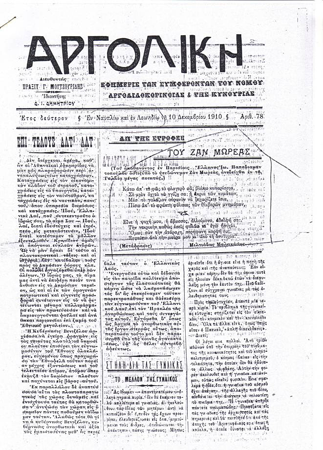Στην «αναστατική» έκδοση με τίτλο «Αργολικόν Ημερολόγιον 1910, Εκδιδόμενον υπό του εν Αθήναις Συλλόγου των Αργείων» και τυπωμένο «Εν Αθήναις – Εκ του τυπογραφείου των Καταστημάτων Δημ. Τερζόπουλου – 1910», συναντάμε σημαντικούς λόγιους του 19ου αιώνα του Άργους αλλά και του γειτονικού Ναυπλίου, όπως ο Ιωάννης Κοφινιώτης, ο Δημήτριος Βαρδουνιώτης, ο Μιχαήλ Λαμπρυνίδης, ο Ιερέας και ιδρυτής του Συλλόγου «Ο Δαναός» Χρήστος Παπαοικονόμος και άλλους πολλούς, που οι εργασίες τους φιλοξενούνται στις 356 κιτρινισμένες και φθαρμένες από το χρόνο σελίδες του βιβλίου.