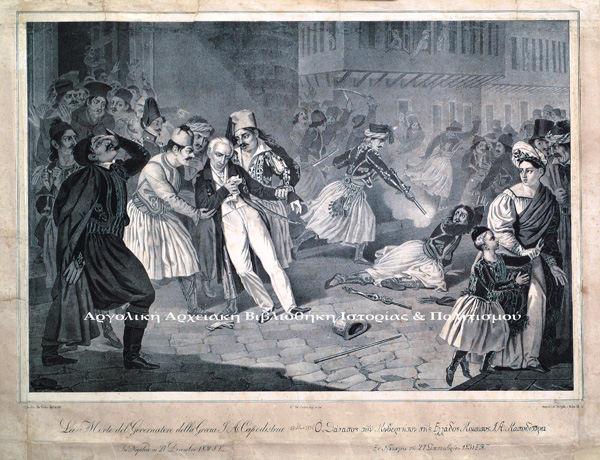 […] Οι Μαυρομιχαλαίοι κατοικούσαν σε μικρή απόσταση ανατολικότερα από τον τόπο συνάντησης στην οδό Γ. Τερτσέτη, πάροδο της οδού Πλαπούτα μεταξύ της πλατείας του Αγίου Γεωργίου και της οδού Αγγέλου Τερζάκη, και είχαν βγει με κακό σκοπό, αναζητώντας πρωΐ – πρωΐ την Κυριακή τον Κυβερνήτη για ξεκαθάρισμα λογαριασμών με τον γνωστό μανιάτικο τρόπο για λόγους τιμής. Ο κυβερνήτης τους χαιρέτησε βγάζοντας το καπέλο του αμίλητος, εκείνοι ξαφνιάστηκαν και του ανταπέδωσαν σιωπηλοί τον χαιρετισμό. Στη συνέχεια ο Κυβερνήτης συνέχισε απρόσκοπτα με τους δυο συνοδούς φρουρούς του την πορεία του προς την εκκλησία, ακολουθώντας το καθιερωμένο σύντομο δρομολόγιο του κυριακάτικου εκκλησιασμού του με αργό περπάτημα συνολικής διάρκειας επτά λεπτών περίπου. Έστριψε δεξιά στην αρχή της οδού Σταϊκοπούλου και προχώρησε προς την εκκλησία. Οι Μαυρομιχαλαίοι μετά τον χαιρετισμό μέσα στο πρωινό δεν ακολούθησαν τον Κυβερνήτη, αλλά έφυγαν γρήγορα ανηφορίζοντας νότια της οδού Τερζάκη το ανηφορικό στενό με τα σκαλοπάτια, διέσχισαν στη συνέχεια τη μικρή πλατεία μπροστά από την εκκλησία και έφτασαν νωρίτερα στον Άγιο Σπυρίδωνα, όπου περίμεναν τον Κυβερνήτη στην πόρτα της εκκλησίας, όπως έκαναν και την προηγούμενη Κυριακή, αλλά ο Κυβερνήτης έγκαιρα ειδοποιημένος δεν είχε πάει στην εκκλησία…https://argolikivivliothiki.gr/2010/04/17/kapodistrias-7/