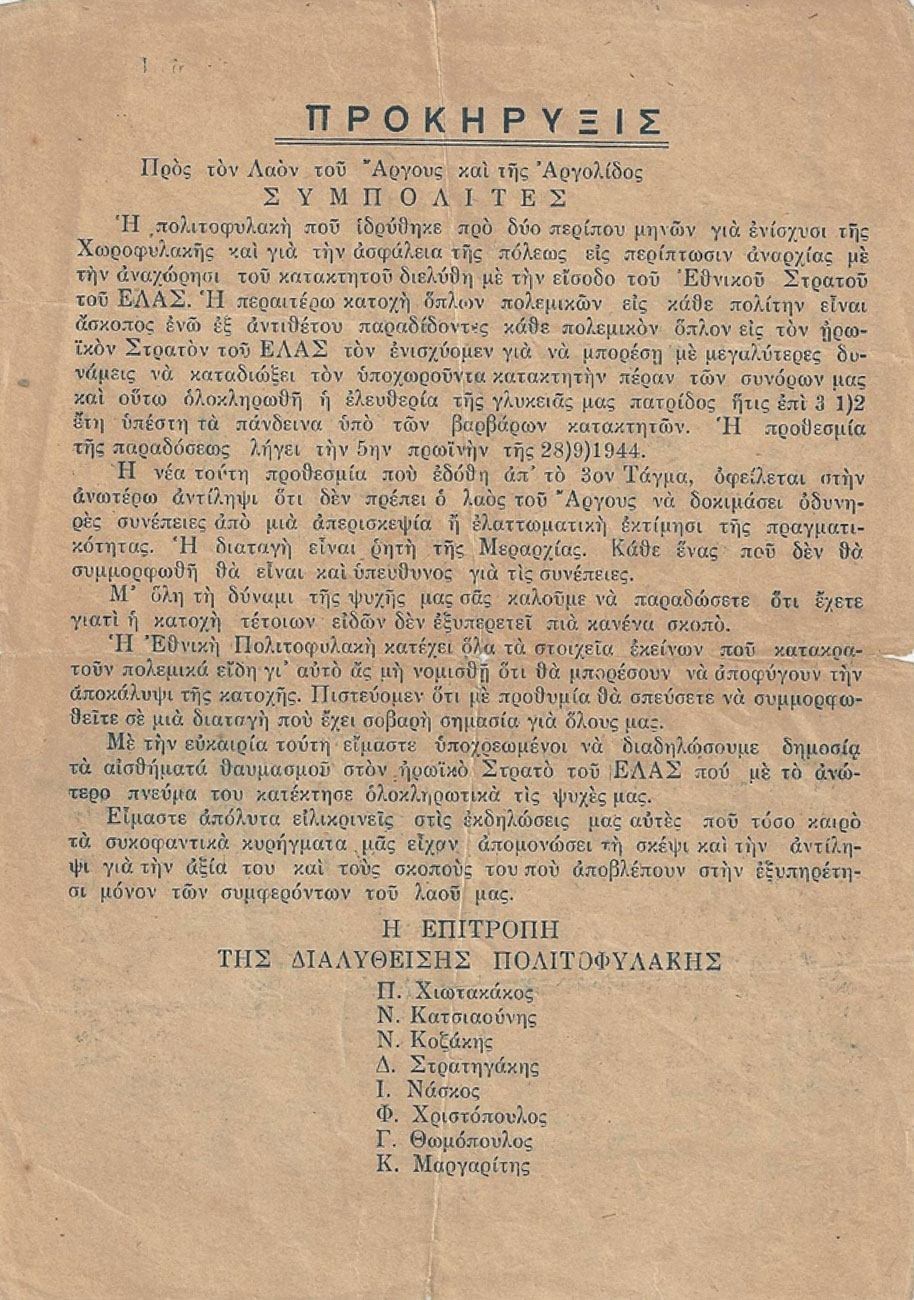 Προκήρυξη της διαλυθείσας πολιτοφυλακής για την παράδοση όλων των όπλων.