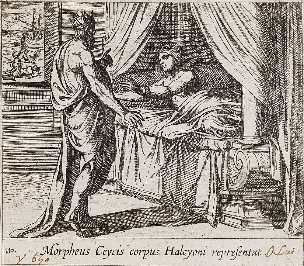 Ο Μορφέας μεταμορφωμένος σε Κήυκα παρουσιάζετε στην Αλκυόνη. Tempesta Antonio, Χαλκογραφία, 1606. Harvard Art Museums.