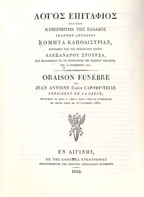 Λόγος Επιτάφιος Εις τον Κυβερνήτην της Ελλάδος Ιωάννην Α. Καποδίστριαν » ΛΙωάννης Καποδίστριας