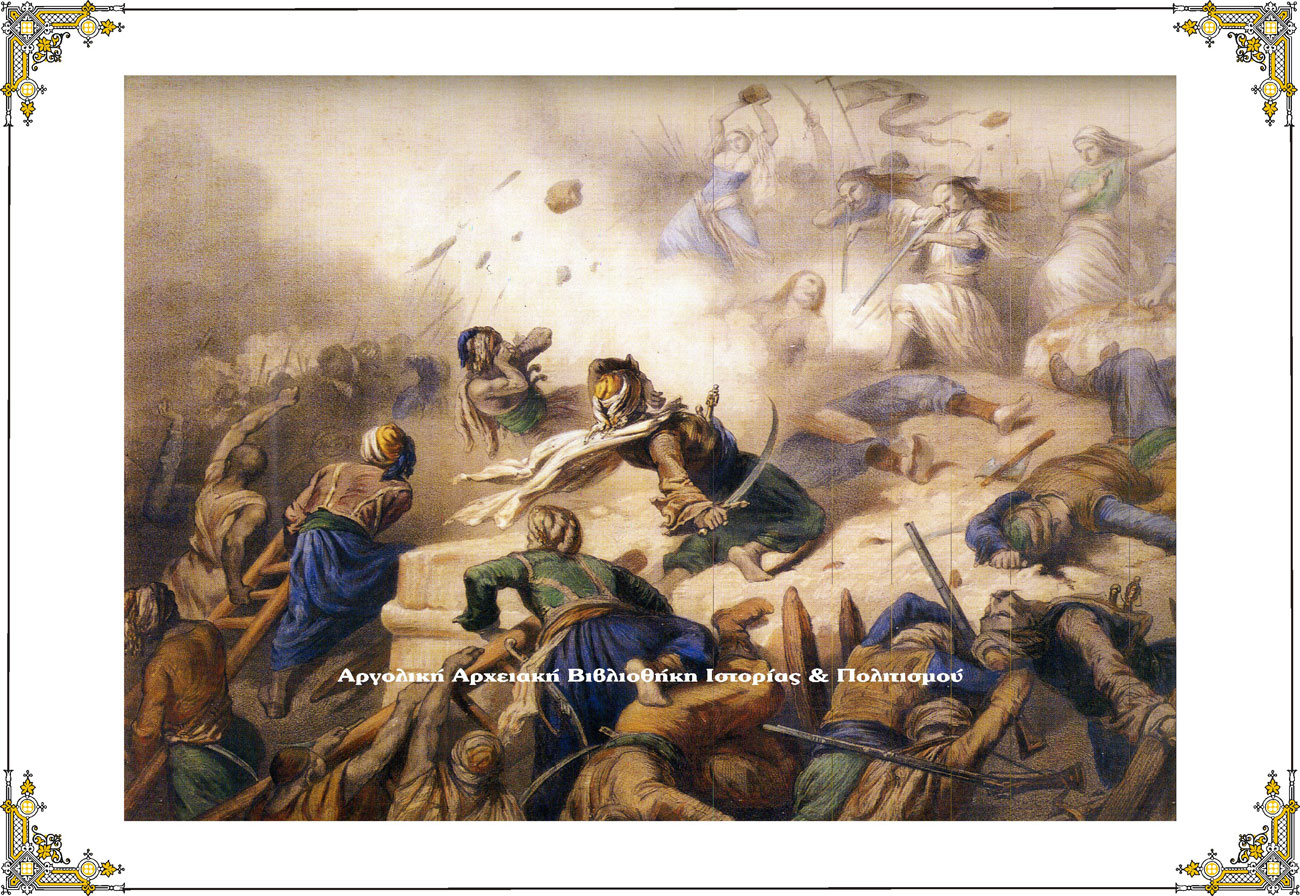 «Ο Ομέρ Βρυώνης εξέλεξε τήν νύκτα τής 24 πρός τήν 25ην Δεκεμβρίου 1822, παραμονήν τών Χριστουγέννων, ελπίζων ότι οι πολιορκούμενοι, συνηθροισμένοι εν τοίς ναοίς, θά προσεβάλλοντο ευχερέστερον. Οκτακόσιοι επίλεκτοι Αλβανοί, κομίζοντες πολυαρίθμους κλίμακας, διετάχθησαν εις έφοδον υπό τήν εύνοιαν τού σκότους, πρός διαφόρους διευθύνσεις τών τειχών. Έτεροι δισχίλιαι επηκολούθησαν αυτούς από τινος αποστάσεως όπως τούς υποβοηθήσωσι, ενώ τό υπόλοιπον τού στρατού, διηρημένοι εις πλείονα σώματα, διηυθύνθη πρός τά αντίθετα σημεία όπως διασκορπίση τάς δυνάμεις τών Ελλήνων.