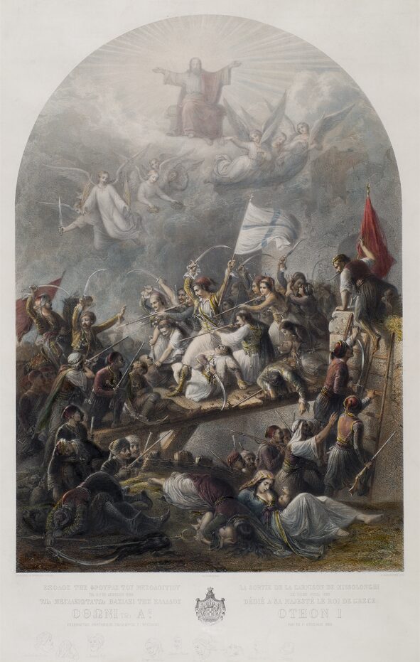 Η έξοδος του Μεσολογγίου. Θεόδωρος Π. Βρυζάκης, 1856, επιχρωματισμένη λιθογραφία.